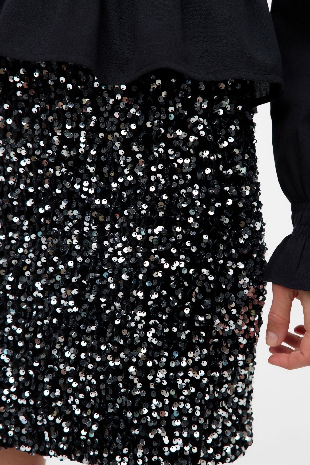 Stig in i rampljuset med Bella Kort Kjol från Vero Moda, ett plagg som är designat för att göra intryck. Denna kjol är inte bara ett klädesplagg; det är en statement-piece som fångar ljuset och blickarna med sin unika Svart Silver-finish. Perfekt för kvinnan som vill addera en touch av sofistikerad lyster till sin stil, oavsett om det är dag eller natt. Kjolens lätta och böljande material, tillverkat av 100% återvunnen polyester, ger en känsla av lyx och komfort samtidigt som du gör ett medvetet och hållbart modeval.