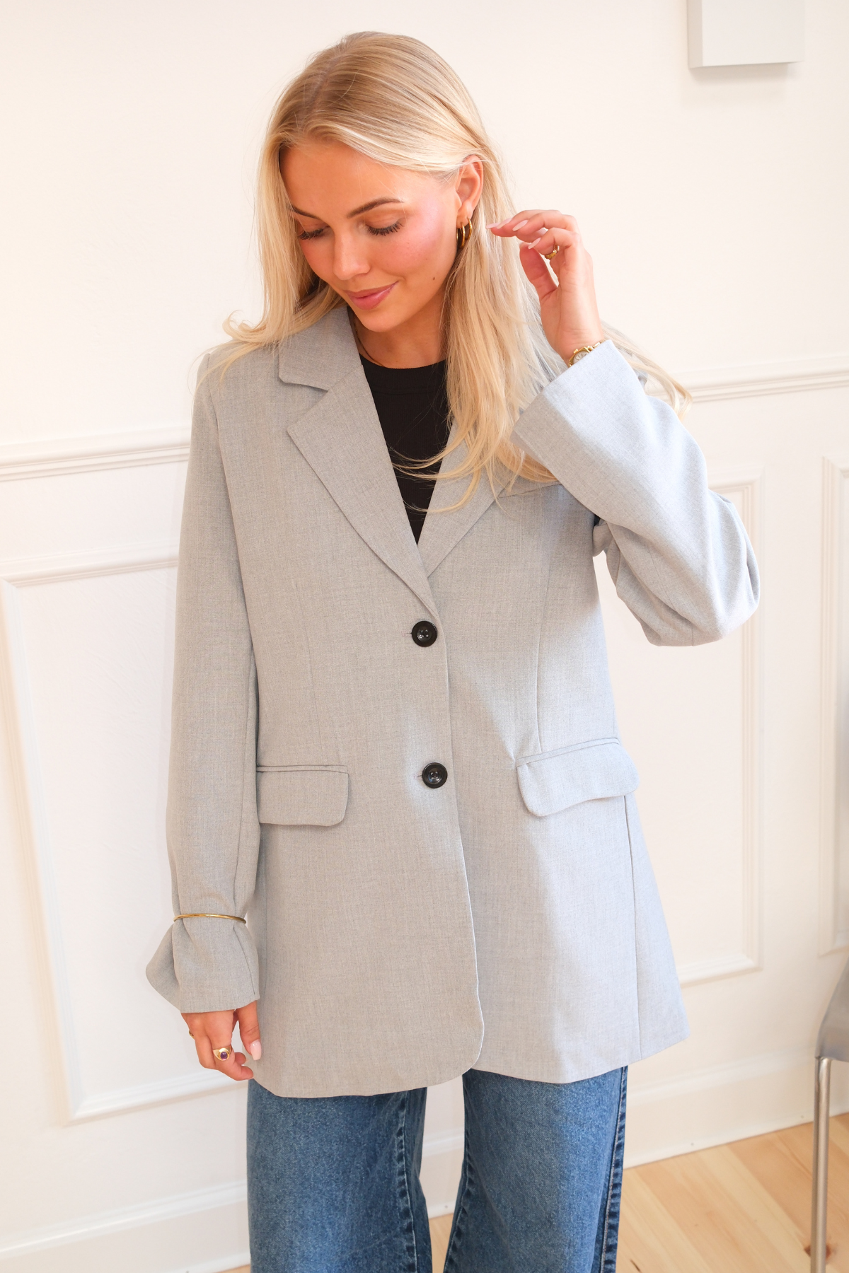 Förvandla din garderob och utstråla självsäkerhet med Claire Oversized Kavaj. Detta är inte bara ett plagg; det är en statement-piece som definierar modern elegans och erbjuder oändliga stylingmöjligheter. I en sofistikerad ljusgrå nyans blir denna kavaj snabbt din nya favorit för alla tillfällen.