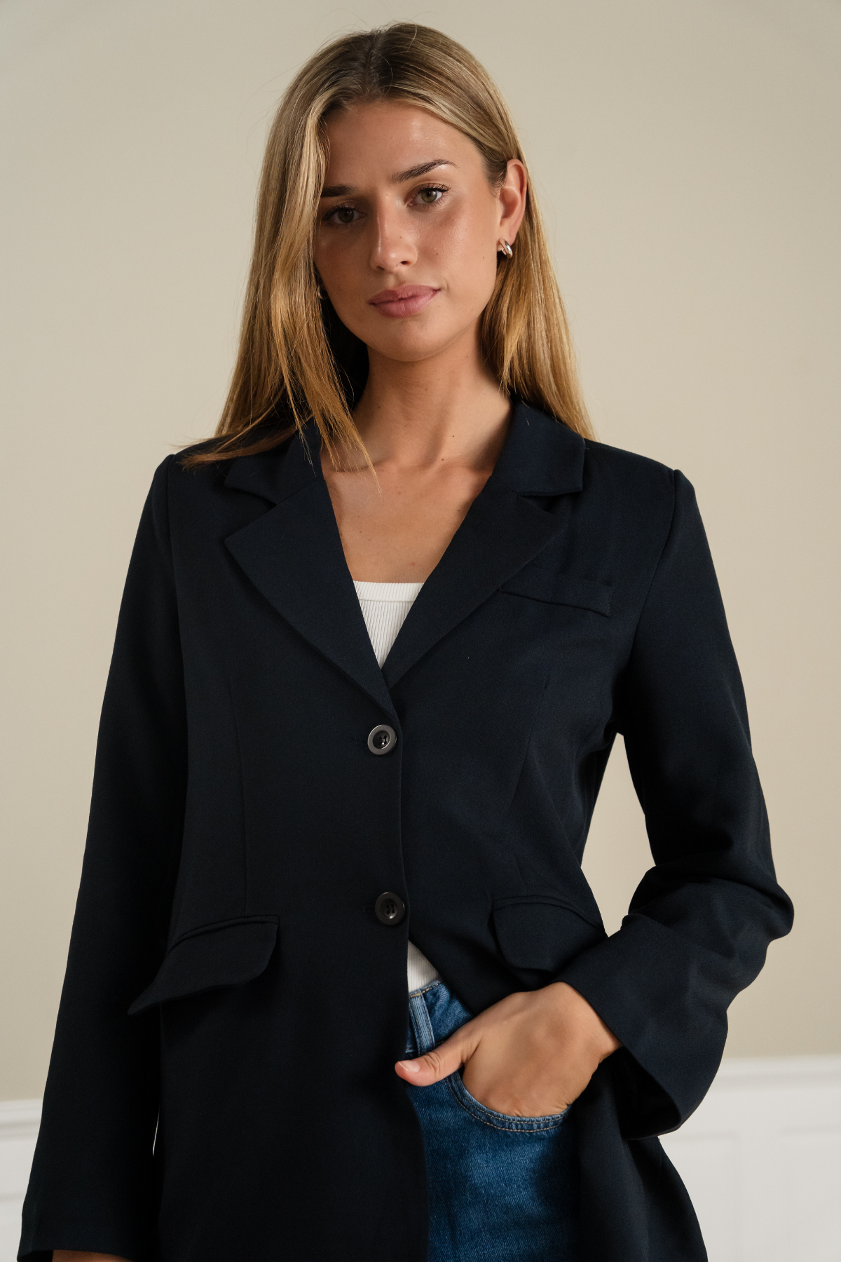 En perfekt skuren kavaj är grundstenen i varje modern kvinnas garderob. Med Claire Oversized Kavaj tar vi detta klassiska plagg till en ny nivå. Den är designad för dig som värdesätter både stil och komfort, och som vill ha ett plagg som enkelt anpassar sig efter din dag – från viktiga möten på kontoret till avslappnade kvällar med vänner. Den generösa passformen skapar en självsäker och samtida silhuett som omedelbart lyfter vilken outfit som helst.