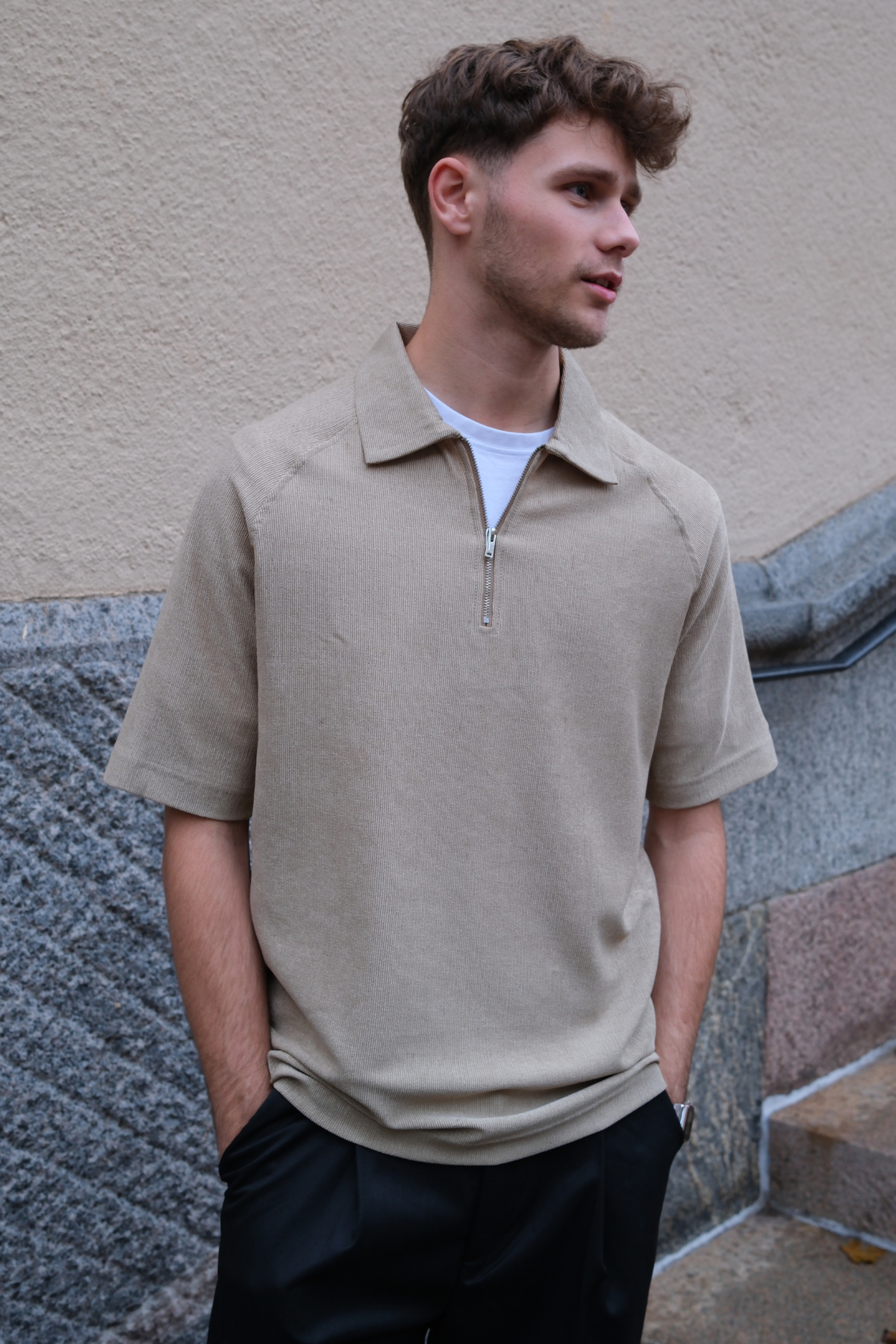Enzo Kortärmad Half-Zip i Khaki: Skapa En Sofistikerad Stil