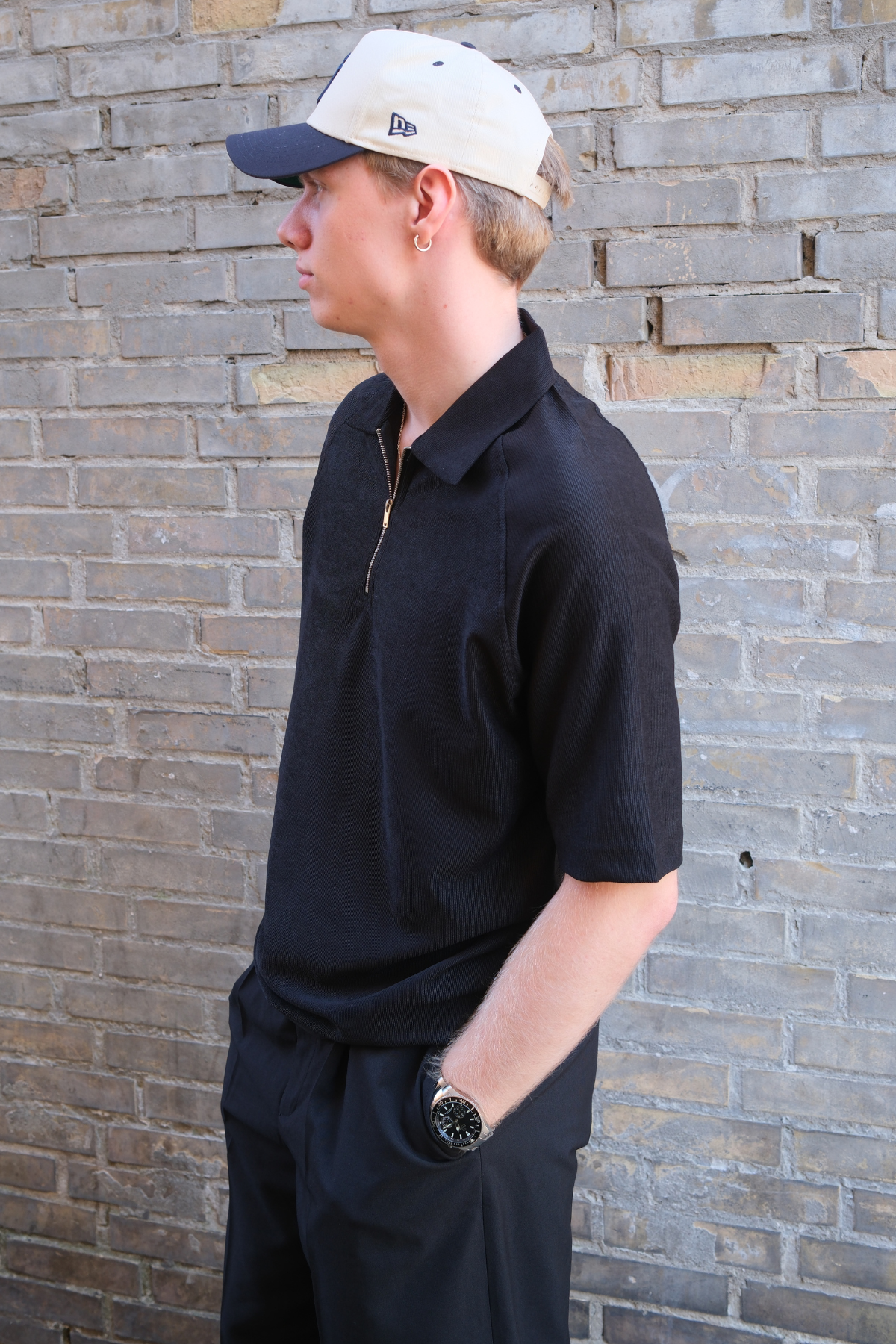 Säg hej till din nya garderobshjälte: Enzo Kortärmad Half Zip från Teeshoppen. Denna tröja är designad för den moderna mannen som vägrar kompromissa mellan stil och bekvämlighet. I en tidlös svart färg erbjuder Enzo en sofistikerad men ändå avslappnad look som fungerar i alla lägen, från kontoret till helgens äventyr. Känn skillnaden med ett plagg som är lika genomtänkt i sin design som det är skönt att bära.