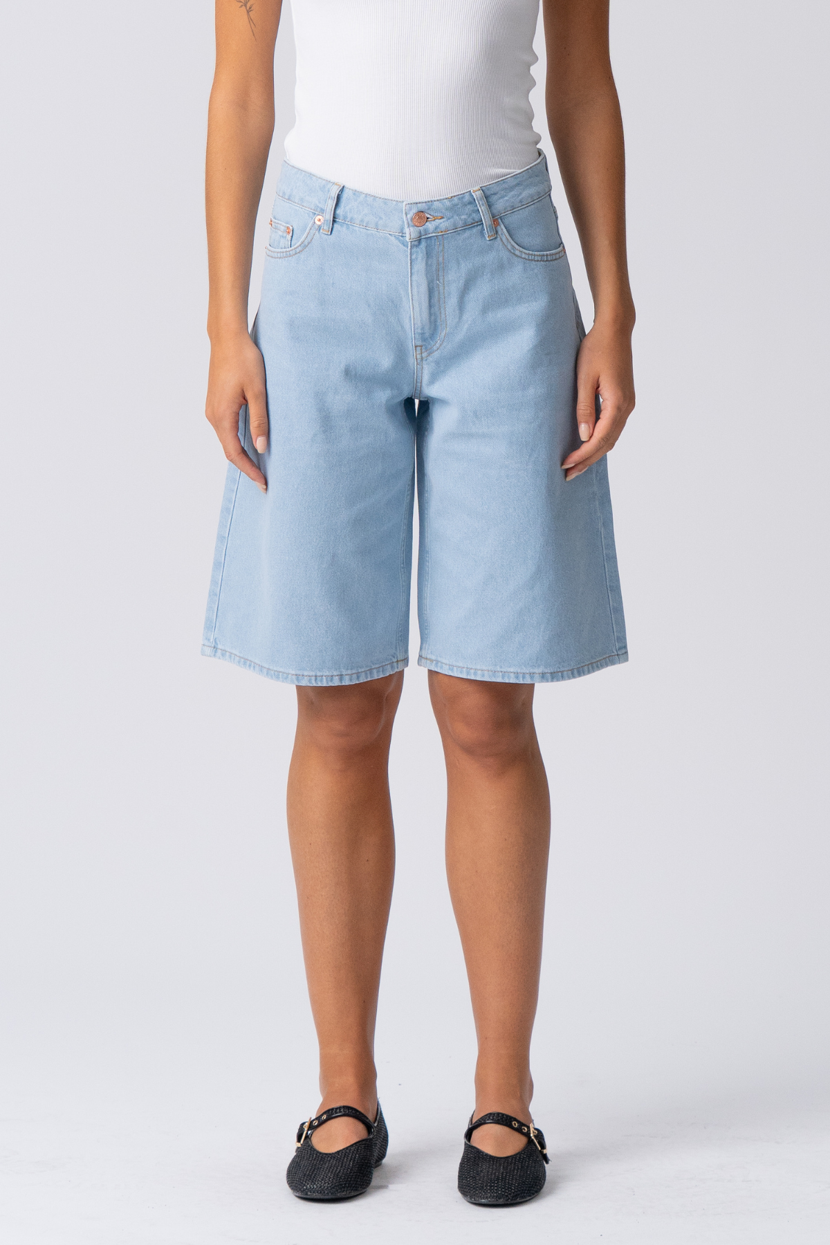 Vill du klä upp dem lite? Kombinera dina Light Blue Denim Jorts med en elegant linneblus, ett par snygga sandaler och dina favoritaccessoarer för en chic sommaroutfit som passar perfekt för lunch med vännerna eller en kväll på stan.