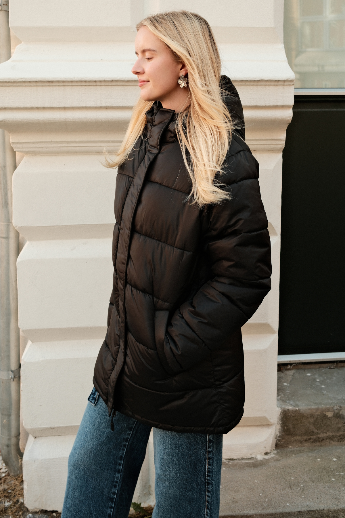 Lång Puffer Jacka - Svart