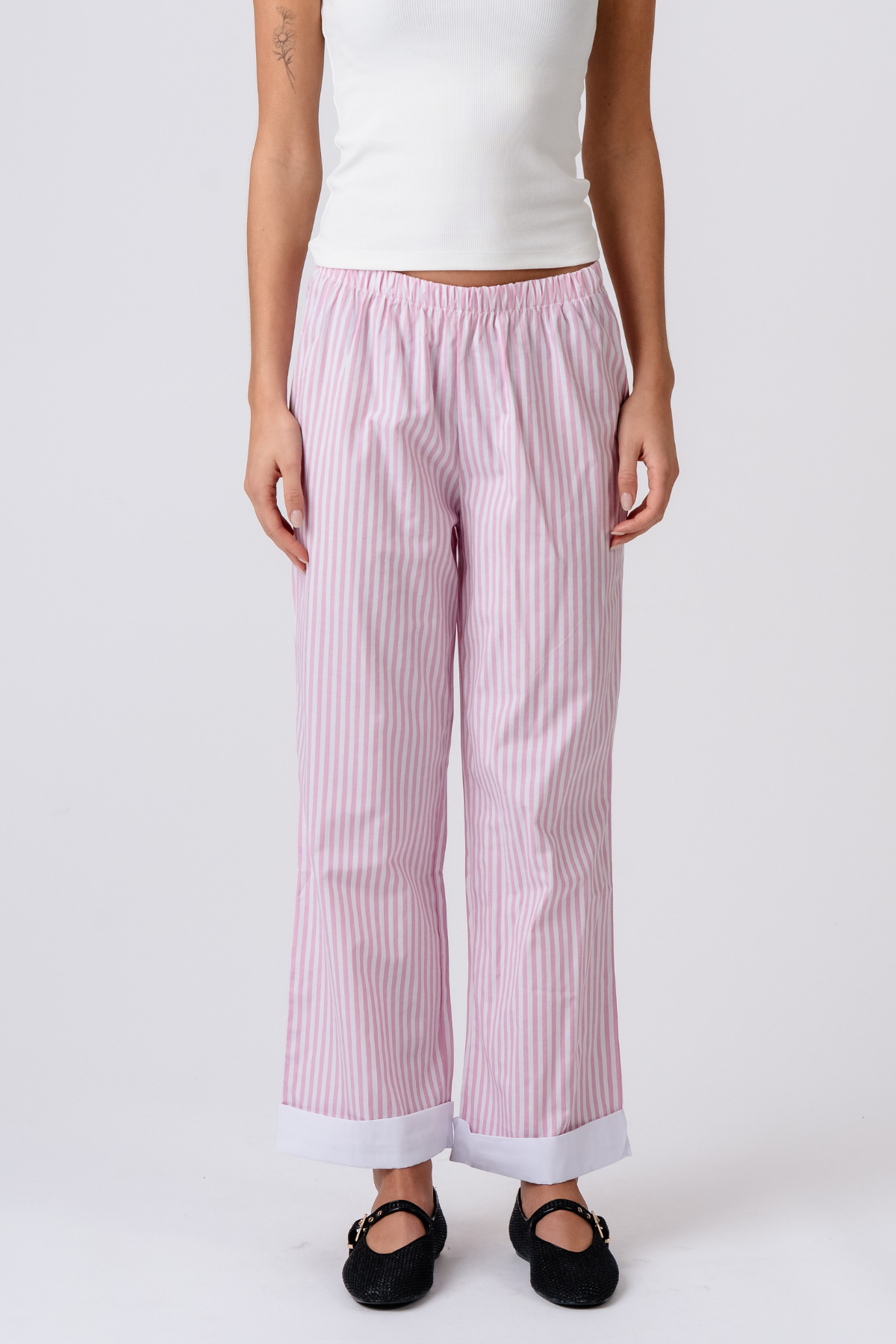Föreställ dig känslan av ren, mjuk bomull mot din hud. Layla-byxorna är tillverkade av 100% högkvalitativ bomull, vilket gör dem otroligt lätta och luftiga – perfekta för varma sommardagar eller när du bara vill känna dig bekväm hemma. Materialet andas och håller dig sval, medan den avslappnade passformen ger dig full rörelsefrihet utan att någonsin kännas begränsande. Den elastiska midjan säkerställer en perfekt passform som anpassar sig efter dig, hela dagen lång.