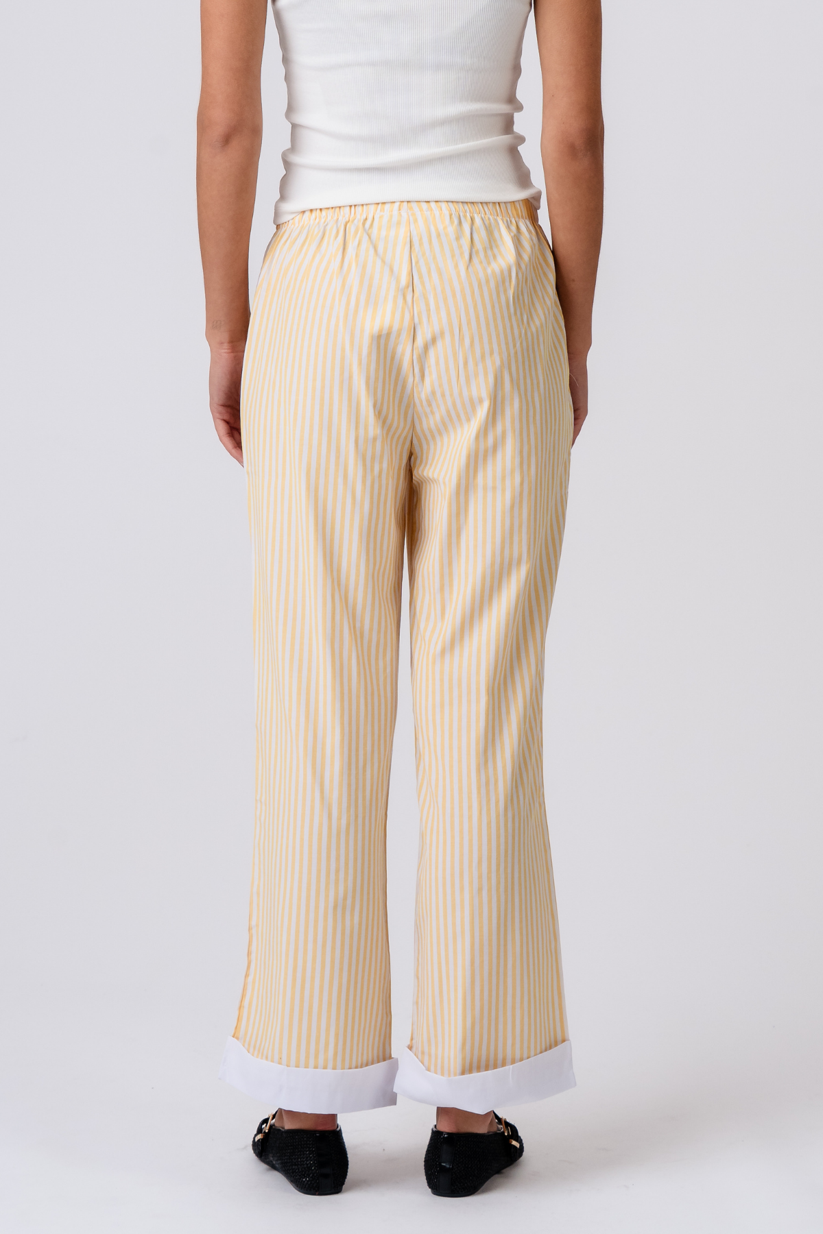 Mångsidigheten hos Layla Randiga Pants gör dem till ett måste i varje garderob. Skapa en enkel och chic look genom att matcha dem med en krispig vit t-shirt och ett par vita sneakers för en perfekt vardagsoutfit. För en mer uppklädd känsla, kombinera dessa gula byxor med ett elegant linne, ett par sandaler med klack och dina favoritsmycken. De fungerar även utmärkt med en jeansjacka för svala sommarkvällar, vilket gör dem till ett självklart val året runt.