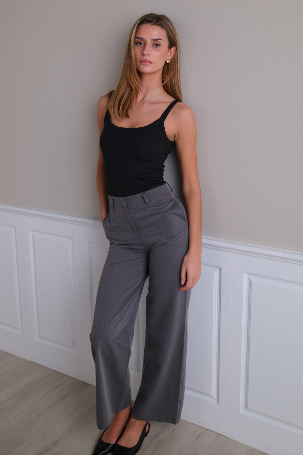 Mångsidigheten hos Rosalie Wide Pants gör dem till en ovärderlig del av din garderob. Den tidlösa grå nyansen fungerar som en perfekt bas för oändliga stylingmöjligheter.