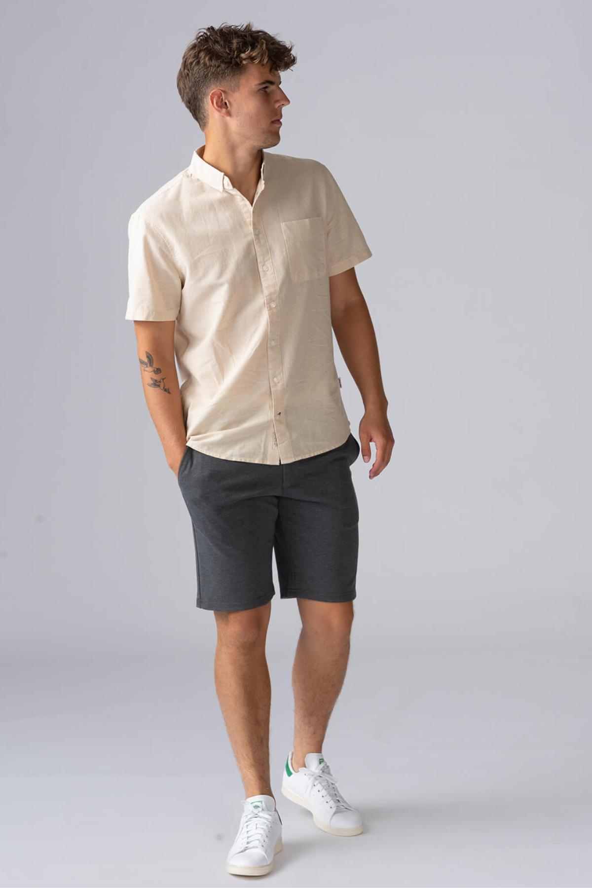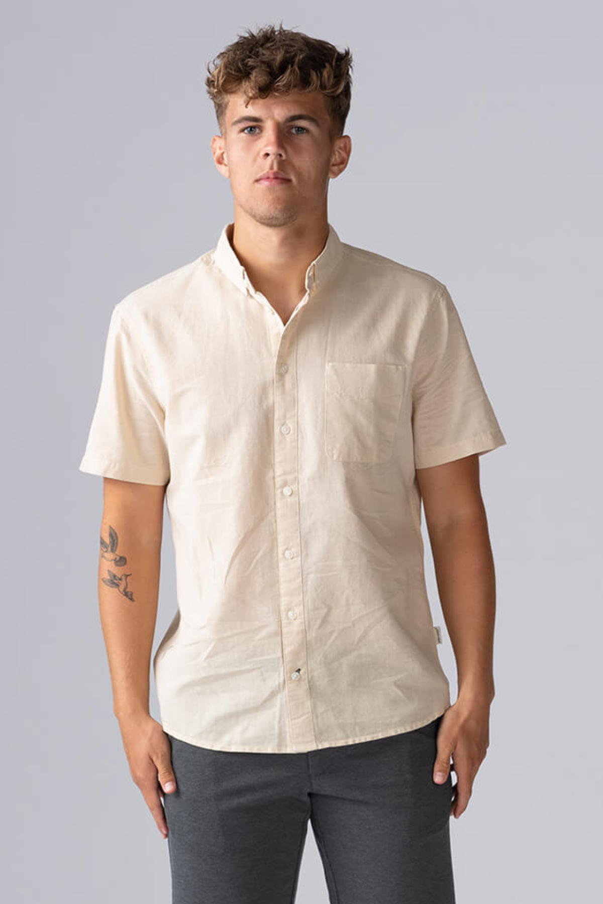 Höj din stil med kortärmad linneskjorta - Oyster Gray