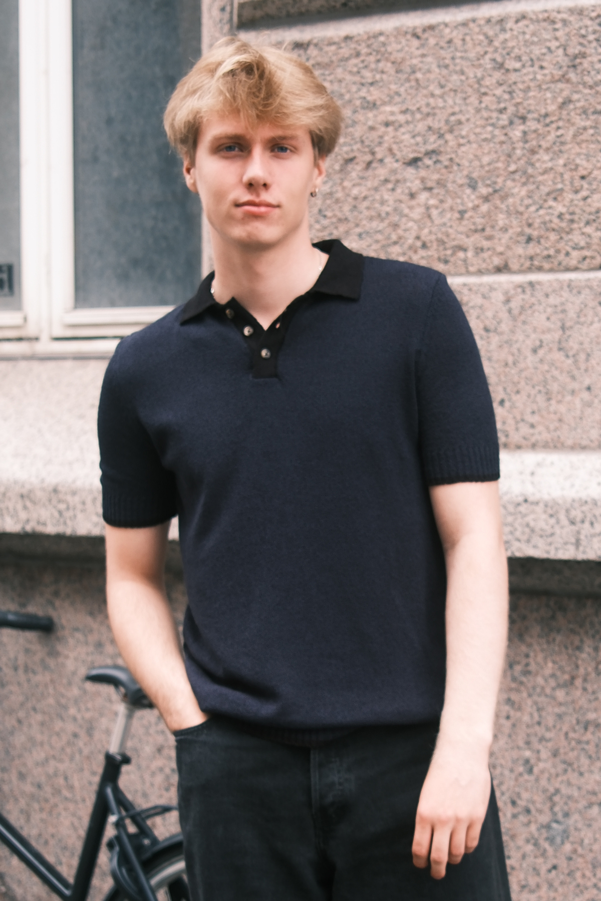 Stickad Pikétröja - Navy