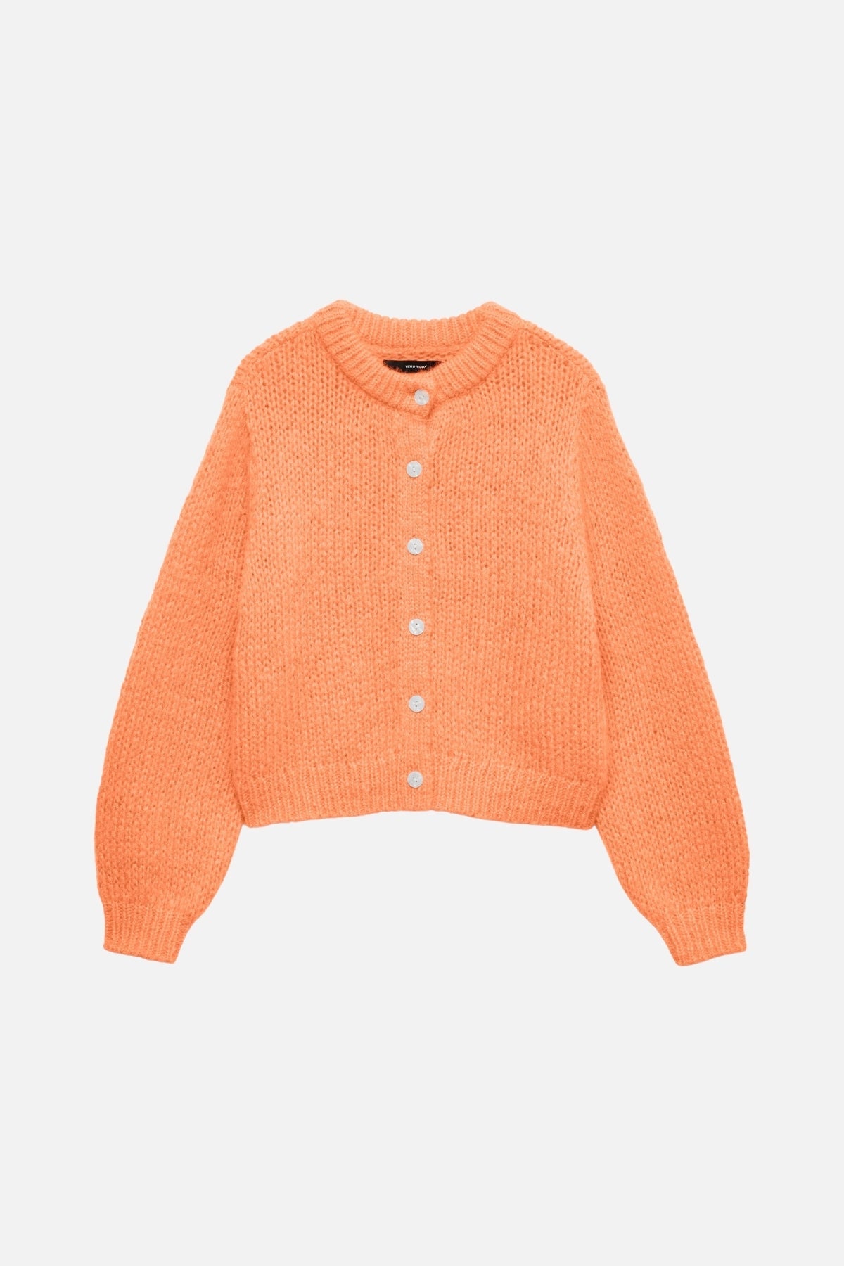 Känn hur en våg av energi och stil sköljer över dig med Wilo O-Neck Cardigan i den ljuvliga färgen Cantaloupe från Vero Moda. Denna cardigan är inte bara ett klädesplagg; det är en humörhöjare, en accessoar som omedelbart förvandlar din look och ger dig en känsla av fräschör och självförtroende. Perfekt för kvinnan som älskar färg och vill addera en sofistikerad men lekfull touch till sin garderob.