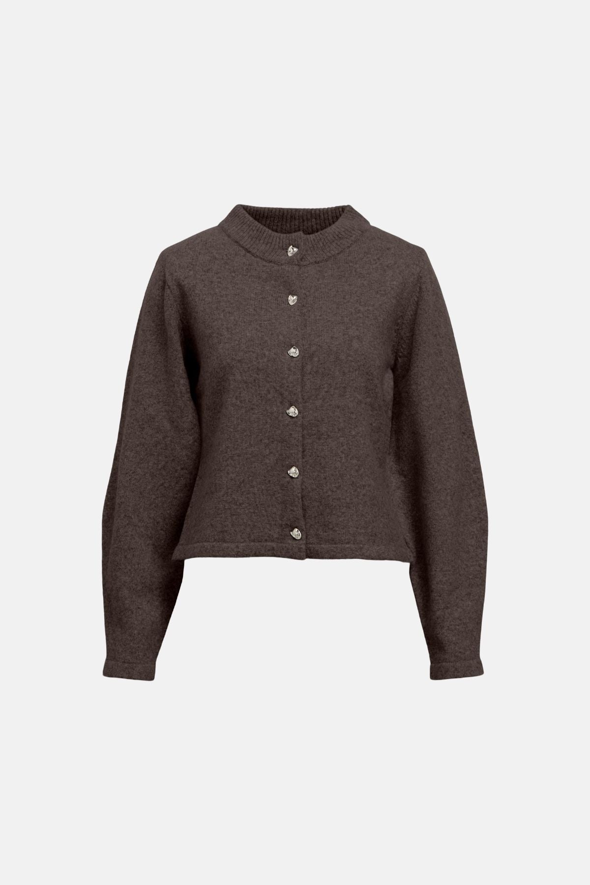 Mångsidigheten hos Zari Knit Cardigan gör den till den ultimata garderobshjälten. Den rika, bruna melange-färgen är otroligt lätt att matcha och lyfter vilken outfit som helst. Bär den öppen över en enkel t-shirt och dina favoritjeans för en avslappnad helglook, eller svep den över en klänning för extra värme och elegans på kontoret.